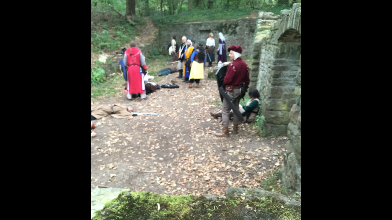 Ein Fluss, an dem weder ein Baron noch die Bauern übersetzen würden, macht diesen stillen Wald zu einer Halbinsel. So verweilt still die Rohdenburgruine als einzige Möglichkeit, um den Wald zu betreten und auch wieder zu verlassen. Lasst uns, egal ob Krieger, Magier, Alchemist, Schmied, Gerber oder Köhler, gemeinsam an der Ruine „der verwachsenen Pforte des Waldes“ unsere Zelte aufschlagen und das Geschmeiß belagern!
