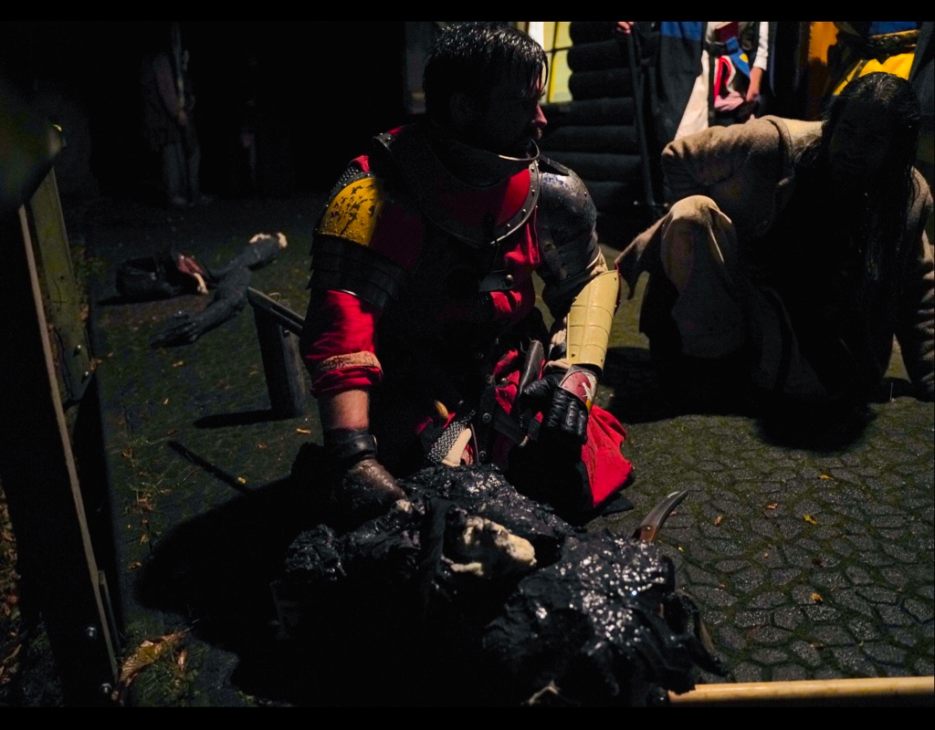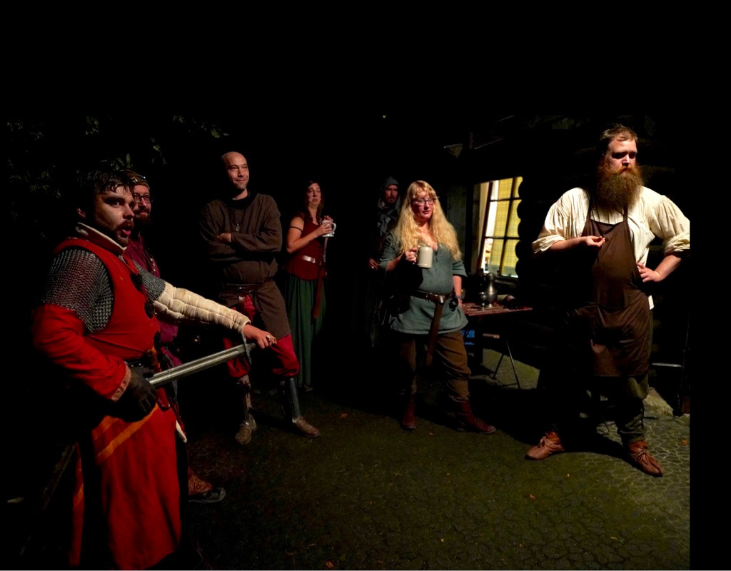 Später kämpfte der ganze kleine Gutshof gegen uns, doch es war aussichtslos. Wir brachten alle um, die uns nach dem Leben trachteten. Sie bildeten doch tatsächlich einen Schildwall gegen uns, aus zusammengenagelten Bretterschildern und Türen. Mit Knüppeln, Arbeitsgeräten, Mistgabeln und Sensen versuchten sie uns zu töten. Allerdings brachten sie sich auch gegenseitig um. Am Ende lebten nur noch die, die eine Münze besaßen. Wenn sie diese Münze kurz weglegten, hörten sie Stimmen, die ihnen einflüstern wollten schlimme Dinge zu tun.